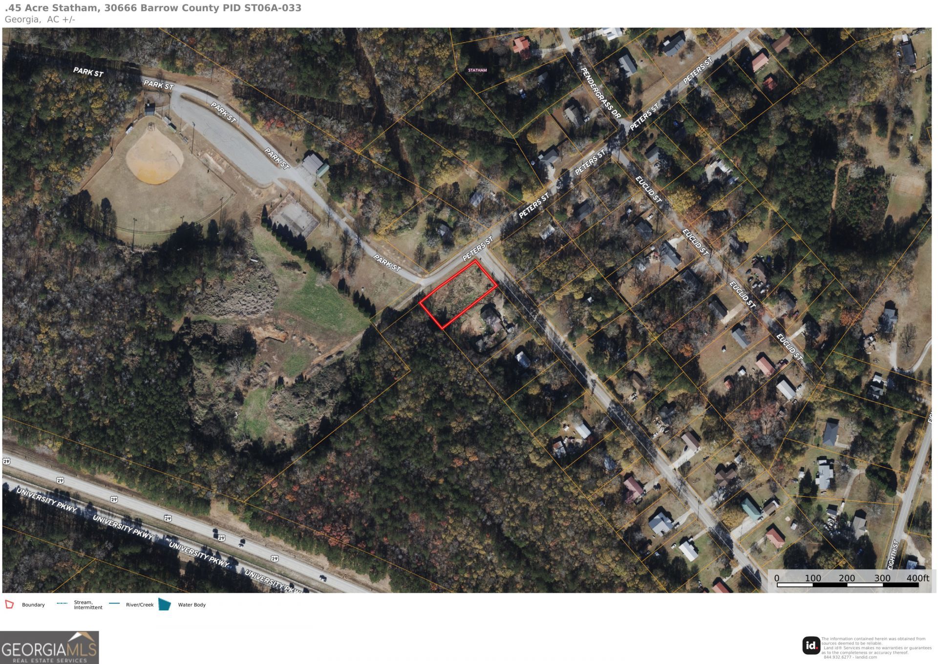 Welcome to .45 acre residential lot located at the corner of Ventura Street and Peters Street within the city limits Statham, Barrow County. Public water and fiber internet available. This beauty offers double paved road frontage totally just over 290 feet. Situated within quiet small-town setting with convenient access to Northeast Georgia's most desirable destinations. Just 15 minutes east, Athens-home to the University of Georgia-provides a plethora of dining, shopping, and entertainment, including the State Botanical Garden of Georgia, Georgia Museum of Art, and a lively downtown known for music venues and local boutiques. Plus, 10 minutes to Fort Yargo State Park, featuring a 260-acre lake, hiking and biking trails, beach access, and fishing opportunities. Travel times include approximately 25 minutes to Lawrenceville, 30 minutes to Buford and Mall of Georgia, and about 1 hour to Atlanta and Hartsfield-Jackson Atlanta International Airport. For navigation utilize the residence next door 2011 Ventura St, Statham, GA, 30666